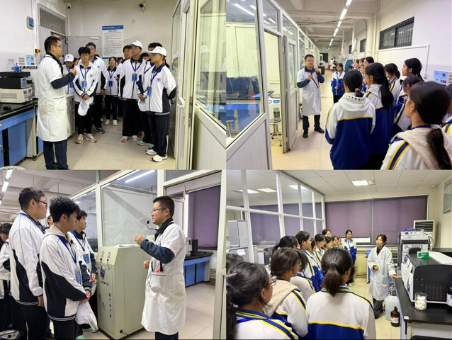 随后在李旭、罗静两位老师的带领下,同学们参观了学院的仪器分析实验室,一台台精密的仪器让学生们大开眼界。两位老师分别针对高效液相色谱仪、气相色谱仪等先进仪器,通俗解读其原理和用途,同学们认真聆听,切实体会到现代分析技术的魅力。