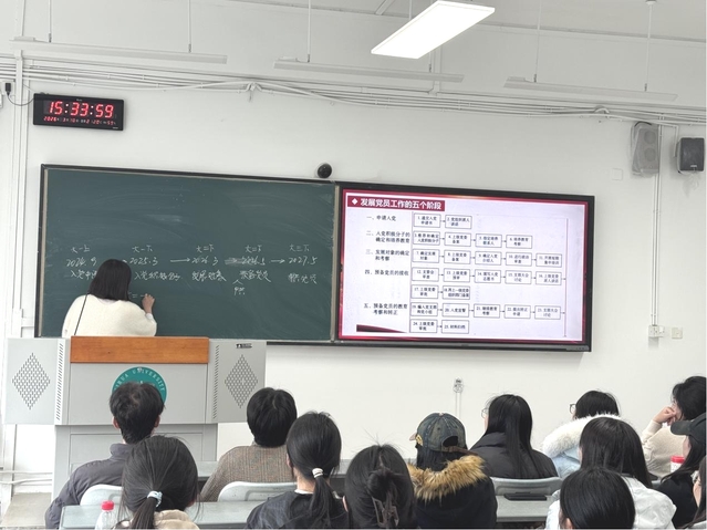 培训围绕党员发展“控制总量、优化结构、提高质量、发挥作用”的总要求,紧密结合党员发展工作的五个阶段展开,重点深入讲解了“发展对象的确定和考察”这一关键环节。培训会上,李秀娟老师详细解读了学校《发展党员工作实施细则》及学院《关于推荐确定学生党员发展对象的实施办法》,明确发展对象必须经过一年以上培养教育。她强调,确定发展对象必须把政治标准首位,严格对照党章要求,确保发展对象具备坚定的政治立场、良好的道德品质、扎实的学业基础和积极的集体观念。同时,她指出具体的基本条件还包括政治立场坚定、严格遵守纪律、群众基础扎实、学业成绩达标等。此外,李秀娟老师还对综合考察流程、政治审查与集中培训进行了详细讲解。培训尾声,李秀娟老师进一步鼓励入党积极分子在德智体美劳各方面争创先进,发挥先锋模范作用。