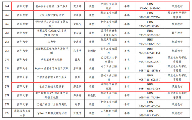 近日,四川省教育厅公布了“十四五”普通高等教育本科省级规划教材第二次遴选结果,我院黄玉坤教授主编的《食品安全与检测(第二版)》与邢亚阁教授主编的《食品工业技术经济学》两部教材成功入选。标志着学院在教材建设上再次取得重要突破,为培养高素质创新型、复合型人才提供了关键支撑。